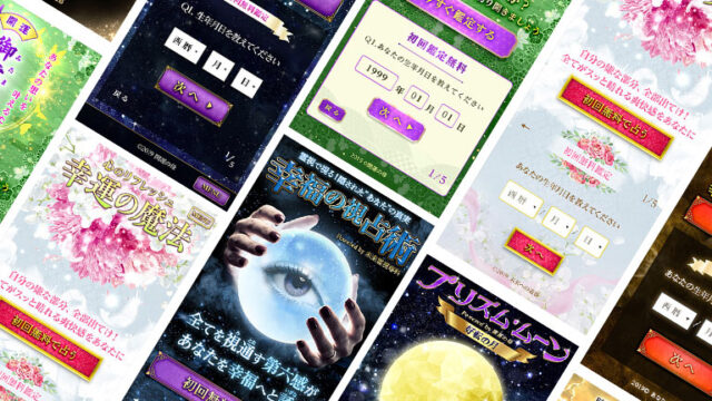 株式会社ZAIZENにて占いLPを作成。 LP内にフォームを設置しjavascriptで画面切り替えを行い、会員登録を促すLPを複数作成いたしました。 ■制作担当 デザイン コーディング